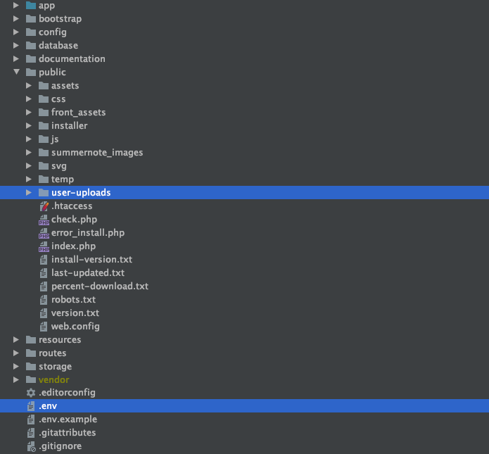 Note: Either of the two folder will be present on your application public/uploads or public/user-uploads