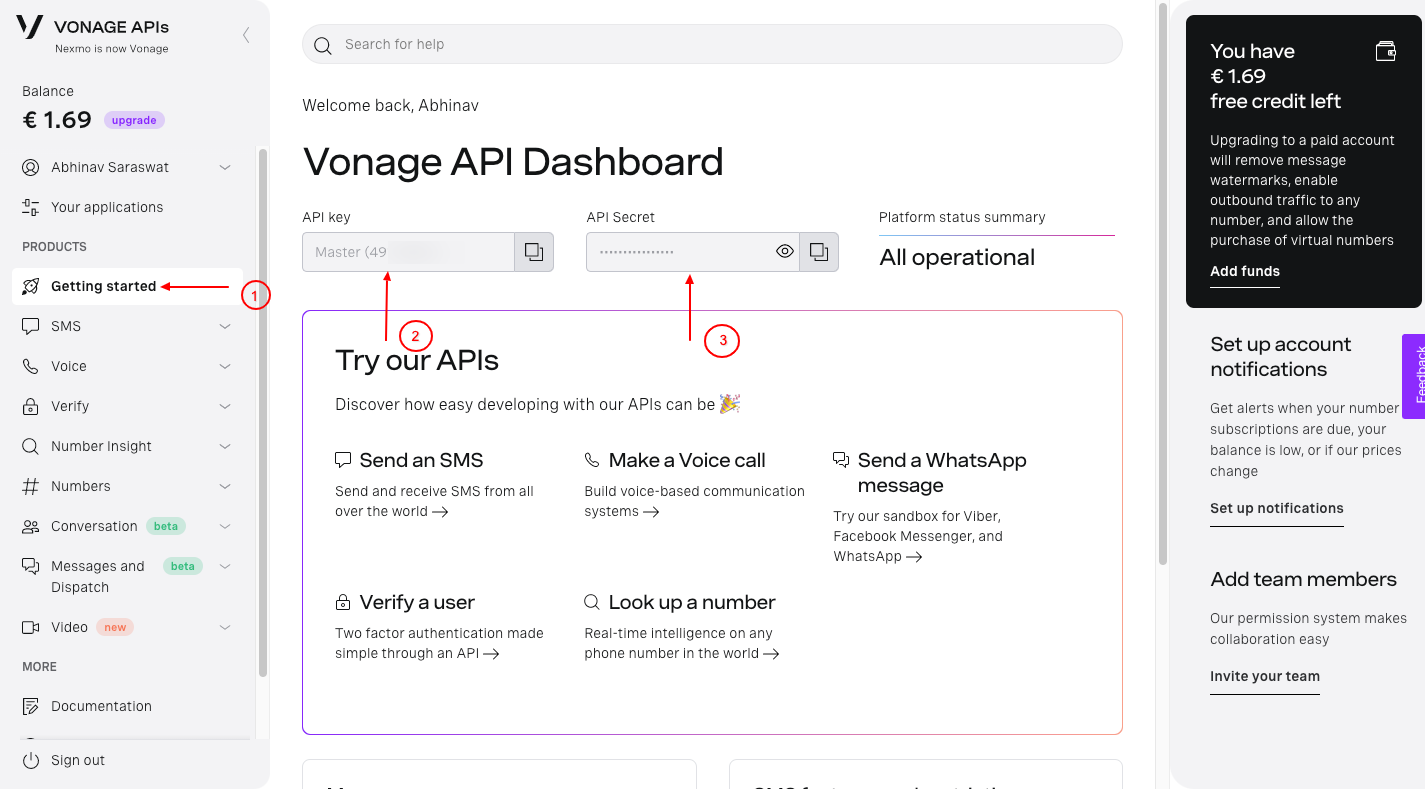1. Create your account from https://dashboard.nexmo.com/sign-up if not already created