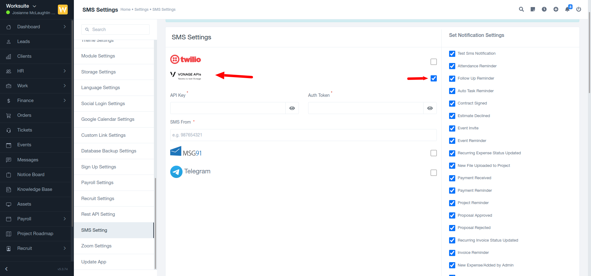 5. You will have to fill API key, API secret and From number in the SMS Settings and click Save button