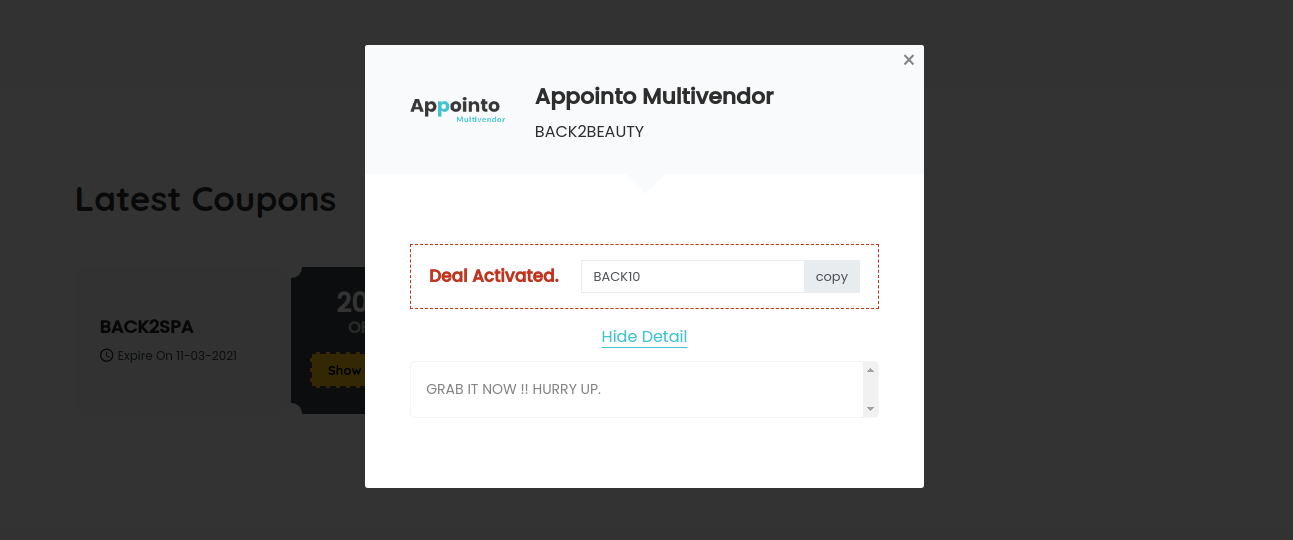 - You can view coupon details and copy coupon codes after clicking on the Show code.
