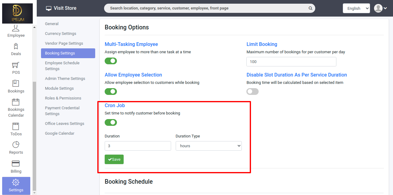 - Enable Allow employee selection option for allowing employee suggestion feature for customers on front-end when they pick booking date and time.