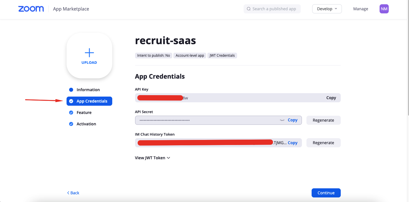 6. App credentials are generated automatically
