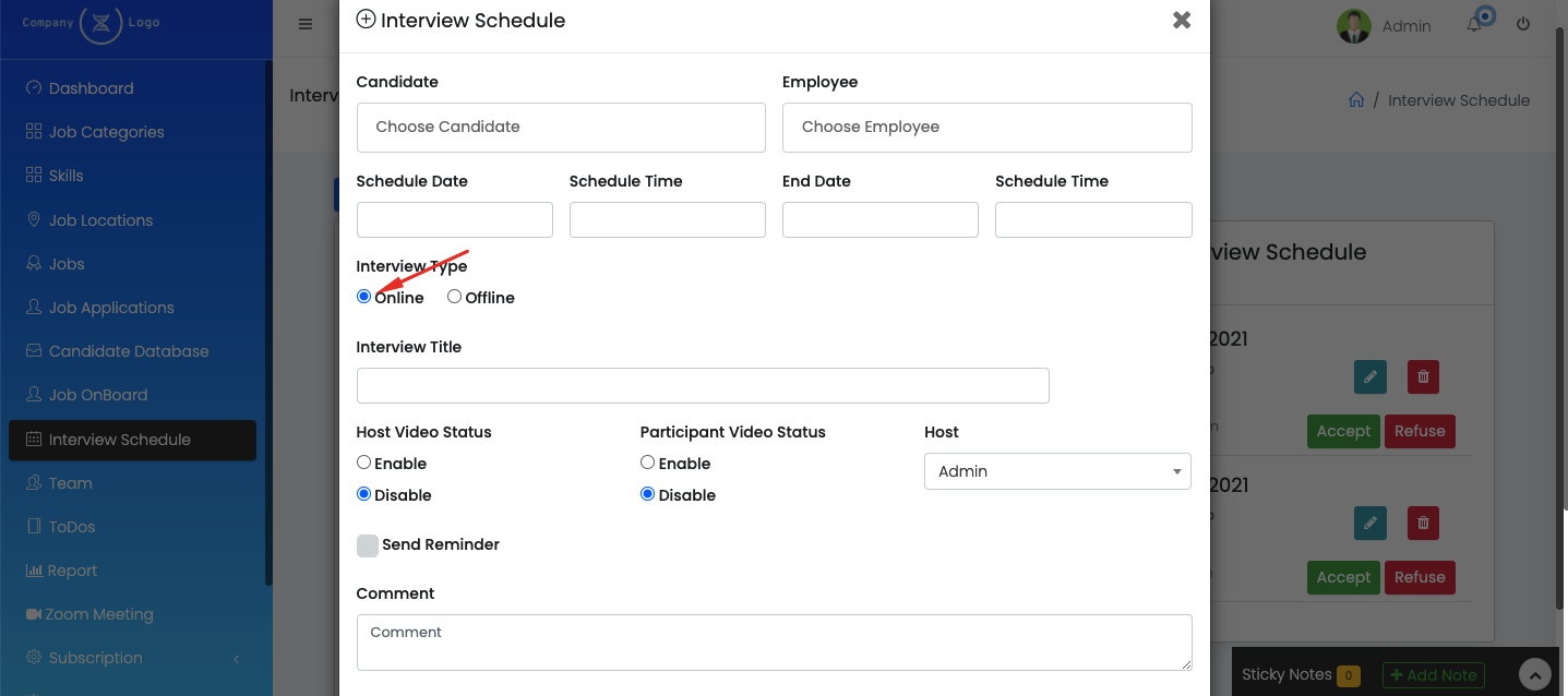 14. You can create interviews online with zoom meetings while creating an interview schedule.