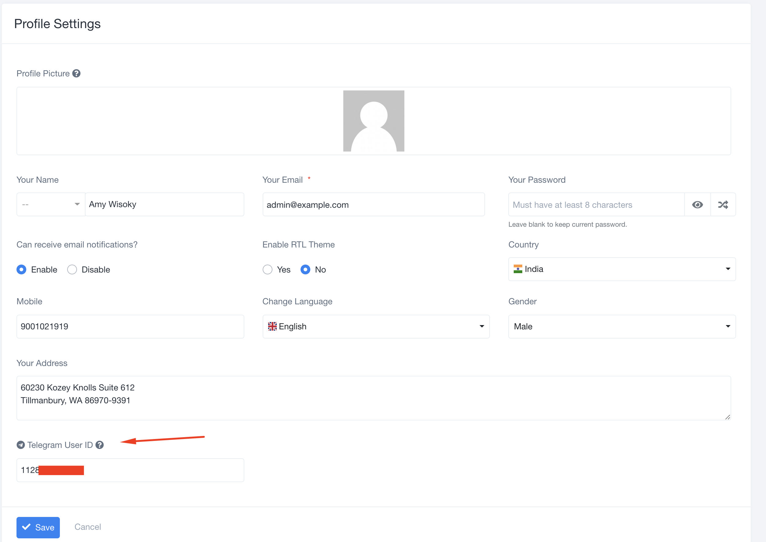 Every user can generate and add their Telegram User ID from their Profile Settings.