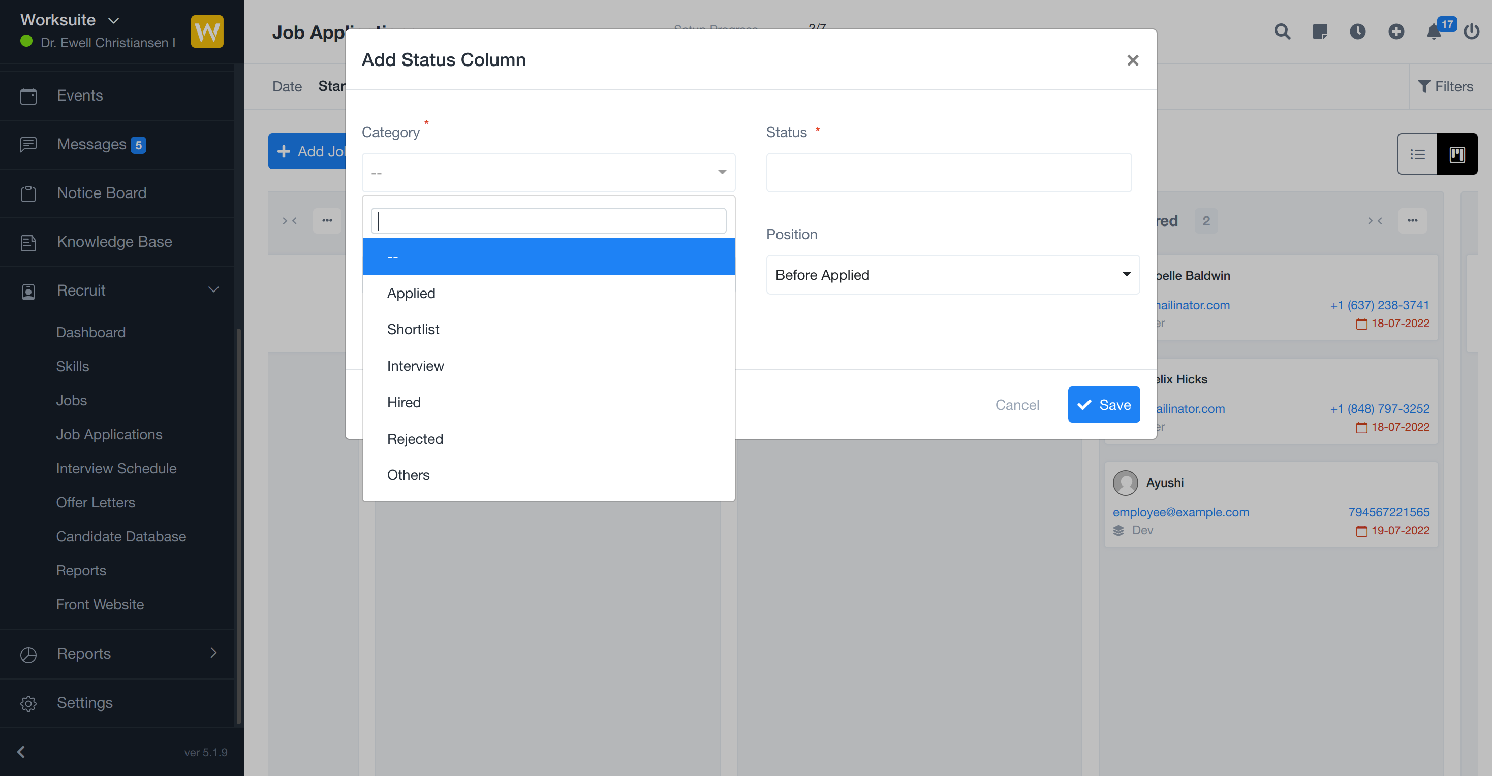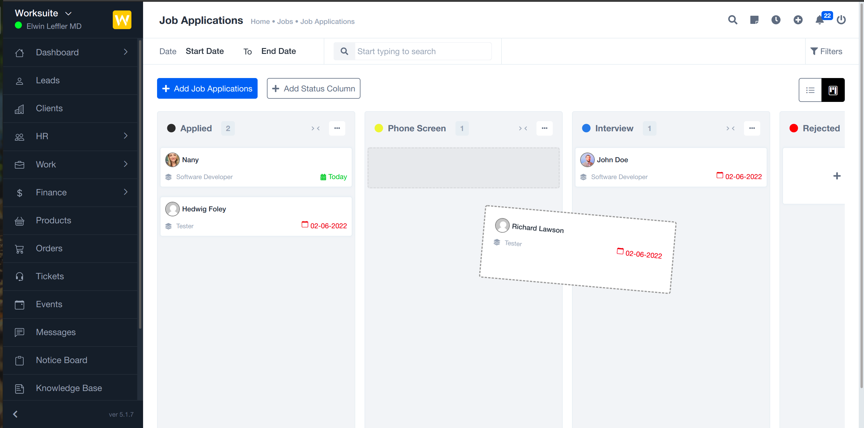 And can switch to the board view. You can change the status of the candidate by drag and drop.