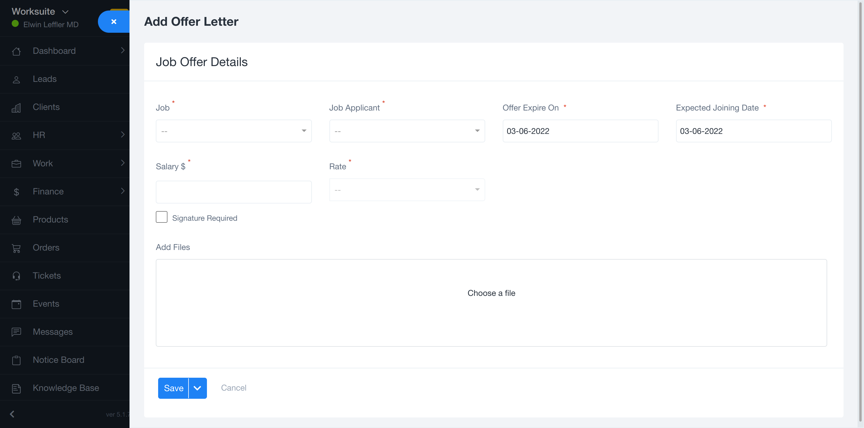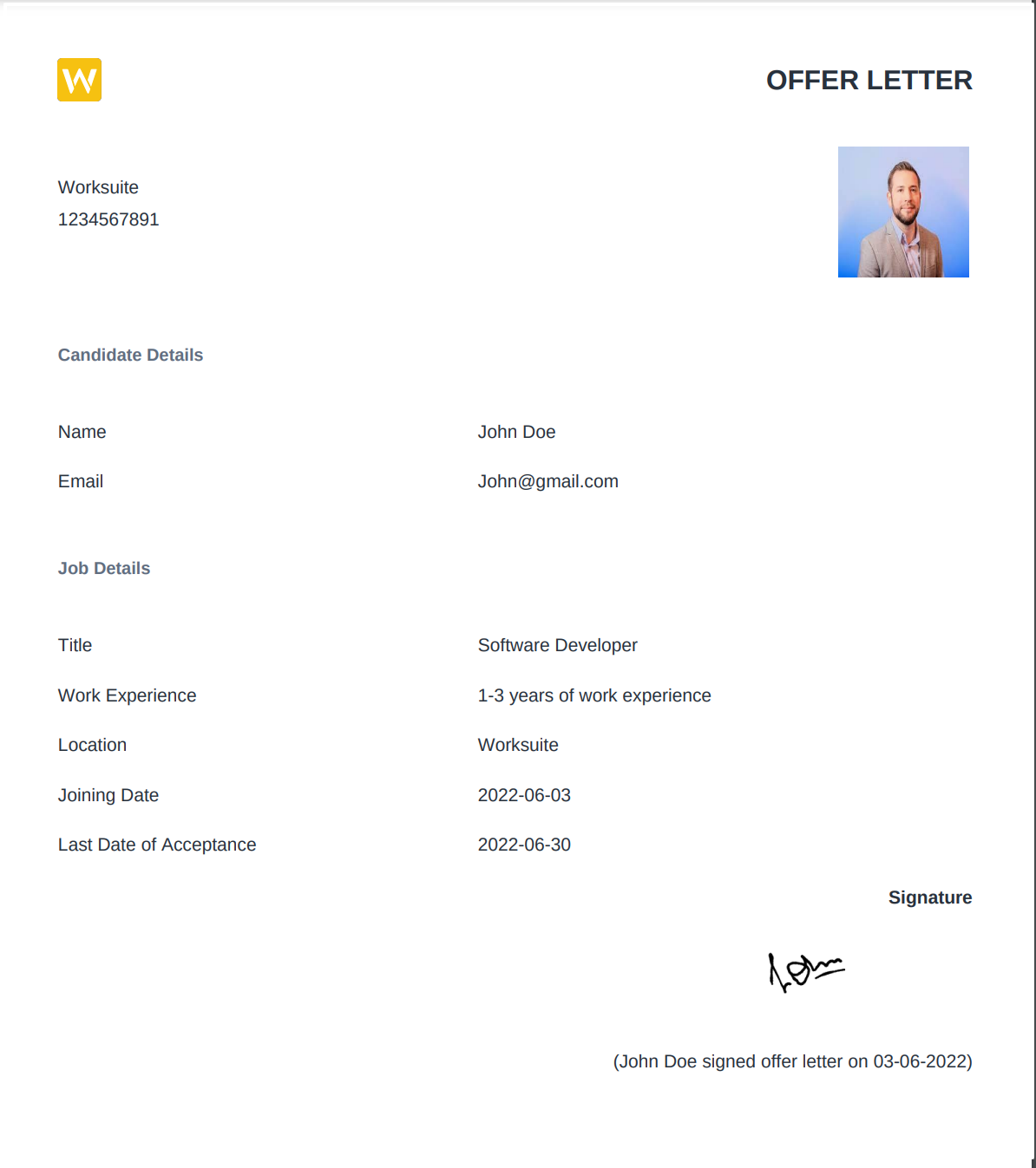 The applicant has qualified in all the rounds of the selection process and will be issued an offer letter. Here you can add an offer letter and send it to the applicant. You need to add details like the offered salary to the candidate, the Joining date,expiring date, etc.