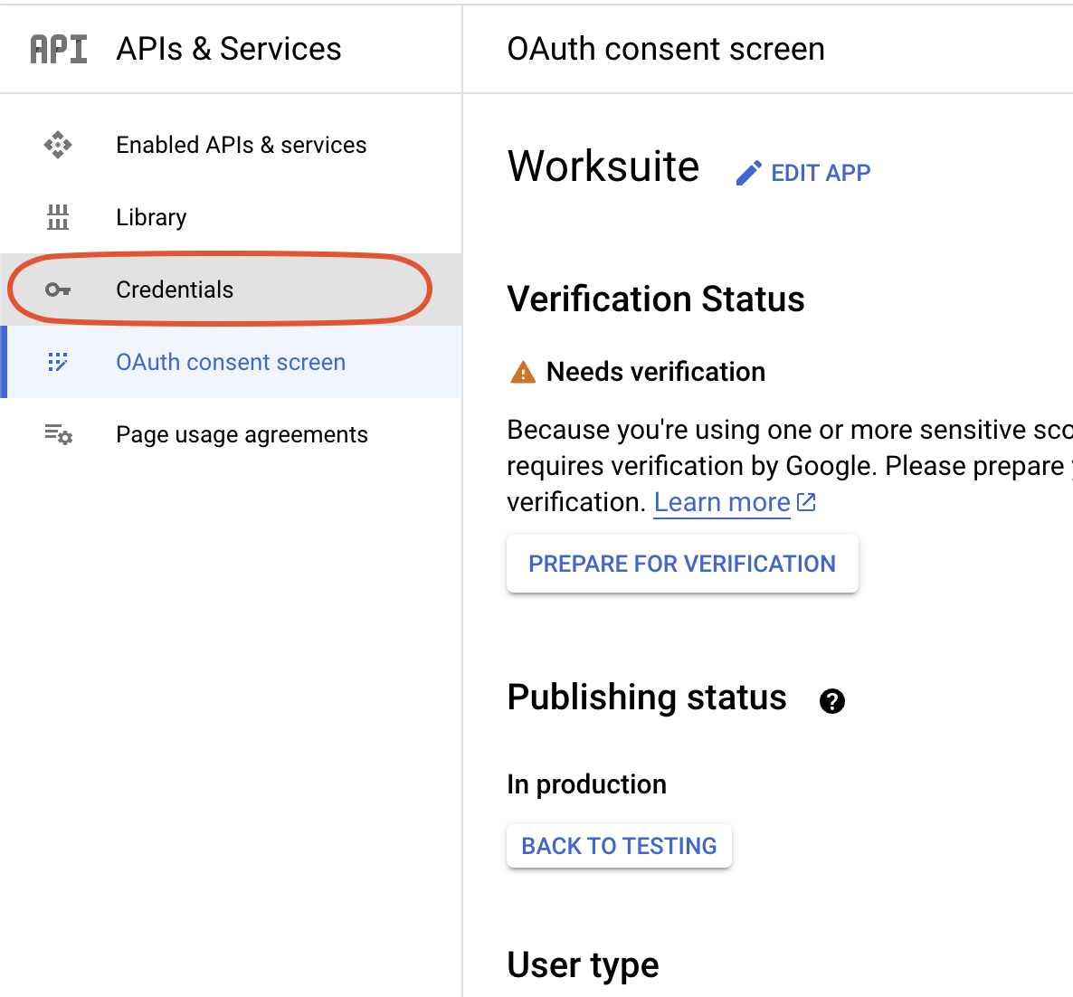 Now go on Credentials
