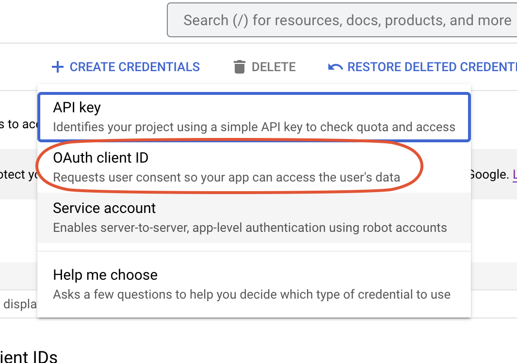 Select OAuth client ID
