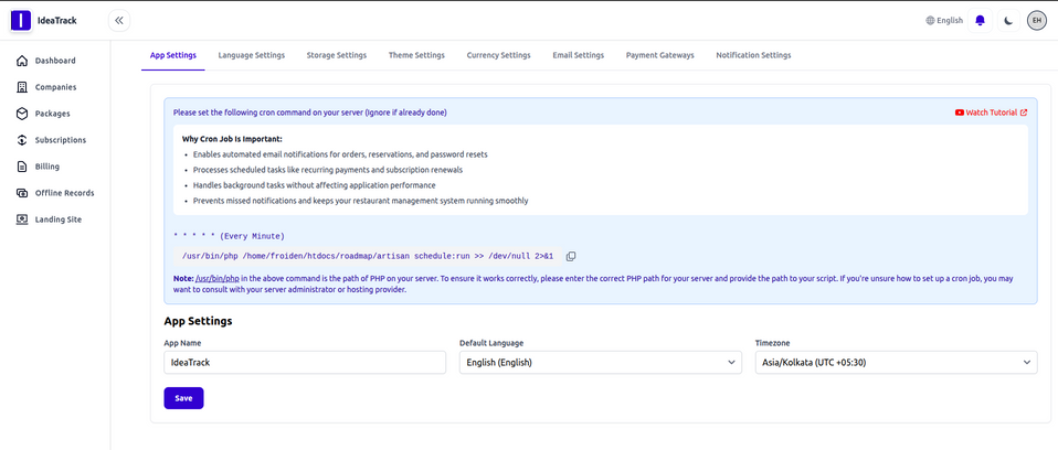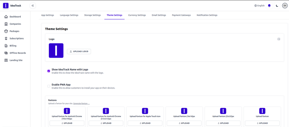 Modify app settings, theme, storage, currency, Payment gateways etc