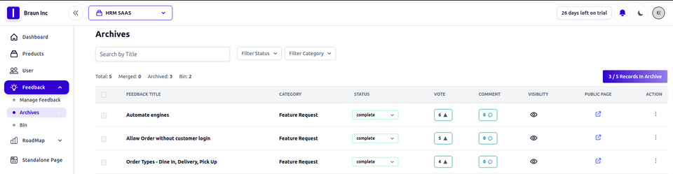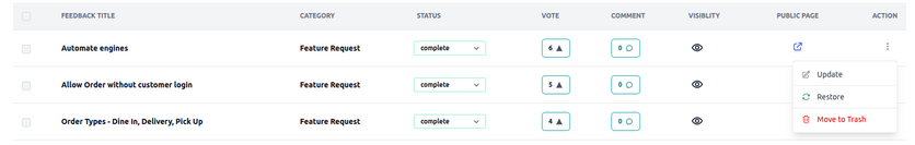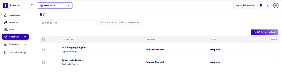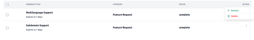 You can later restore these feedback through the restore button. After restoring the feedback will be visible in manage feedback tab.