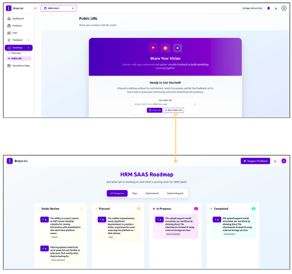 Share public URL to collect feedback from customers and view the public standalone page.