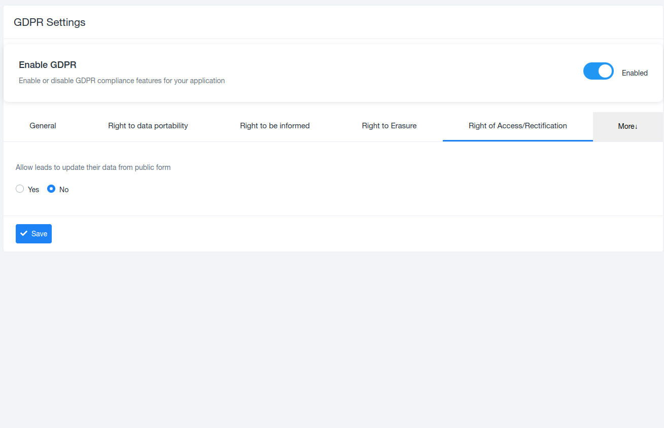 This setting allows leads to correct their personal data: