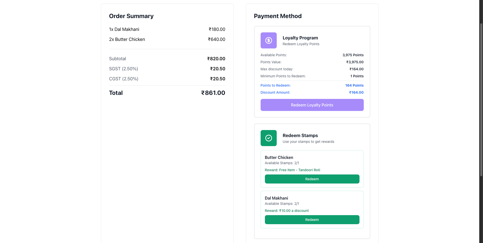- Auto Earning: Points or stamps are awarded after eligible orders.