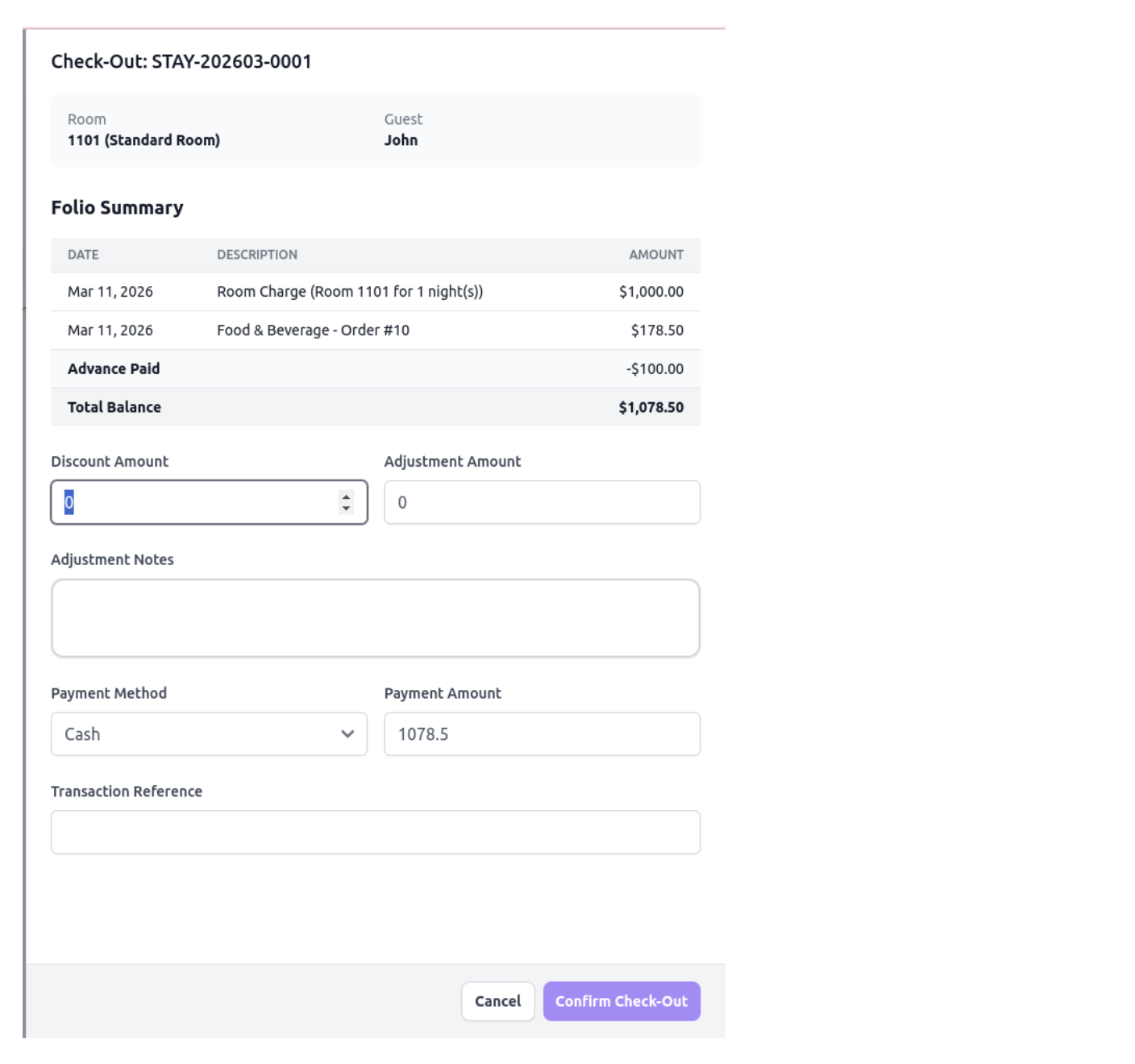 - The amount is automatically added to the guest's final bill.