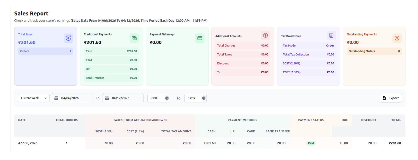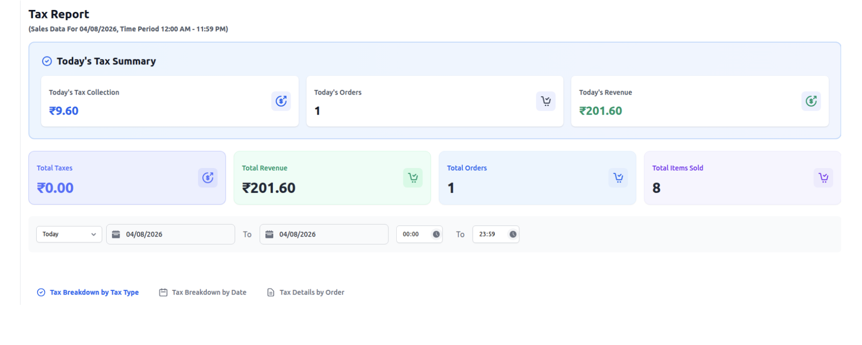 Provides tax breakdown on sales for compliance and filing.