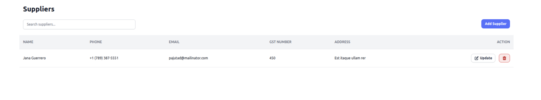 Add and manage suppliers or vendors, including their details and related transactions.